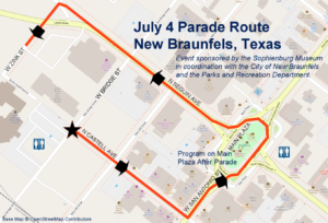Come celebrate America’s Birthday in Downtown New Braunfels as we present an old-fashioned, small-town parade followed by a short patriotic musical program provided by the New Braunfels Community Band on Main plaza.