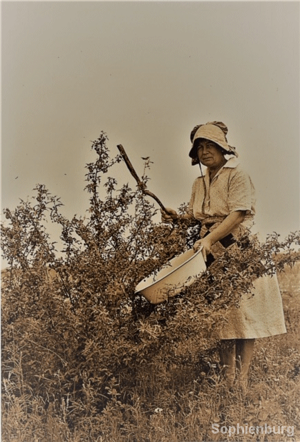 I have many good childhood memories of harvesting the tasty berries. Riding on the back of Grandpa’s pickup truck to “a spot” with lots of agarita bushes, my Grandma, aunties and cousins and I would traipse through pastures thick with mesquite and prickly pear. At a nice full bush, we’d carefully spread a big old sheet underneath the prickly branches and “beat the bush” with and old wood pole to cause the berries to fall. The filled sheet was gathered in and the results poured into big buckets. One by one, each agarita bush was attacked until all the buckets were full. We’d jump back on the truck for the trip home to Grandma’s house where the sheets would be spread out again on the grass. The aunties would pour out the buckets and scatter the berries and leaves over the cloths.