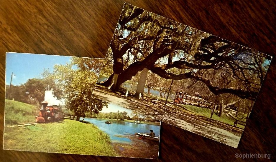 A quick peak into Landa Park: Its Springs and Its People, and some investigating in old issues of the NB Herald-Zeitung provided some neat information. David Schoenvogel, the train’s current owner/operator, is really the only engineer I remember — – but then, he’s had the train since 1982! I don’t remember riding the train as a kid, I probably did though. My real memories of the Landa Park train began when I had my own children. My dad and brother used to send out birthday cards that were train passes to their clients. Since my four children all had their birthdays within six weeks of each other, I’d save all the passes and we’d ride the train together. The excitement would really build up as each card came in the mail and train ride day got closer.