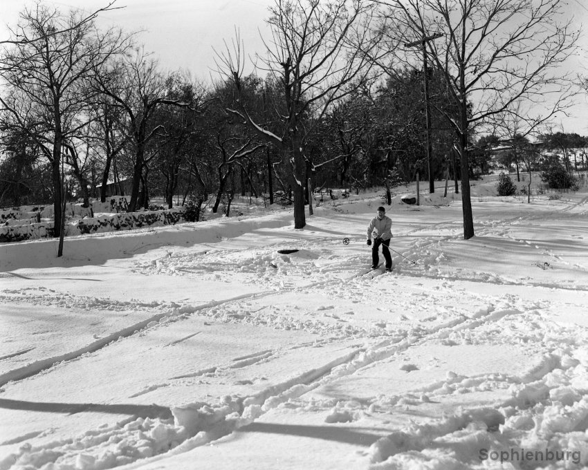 Snowfall in NB, being infrequent, has the same aura around it. I found a listing of officially recorded snowfall for San Antonio and Austin from 1895 to 2011. Using the dates, I spent a couple days looking through the Neu Braunfelser Zeitung and the New Braunfels Herald to test the theory that if it snowed in these cities wouldn’t it have snowed here? I was not disappointed.