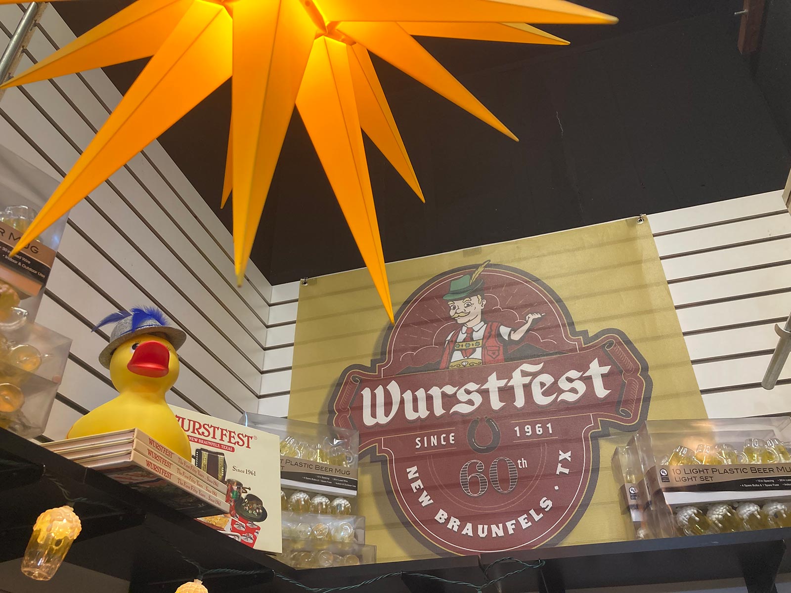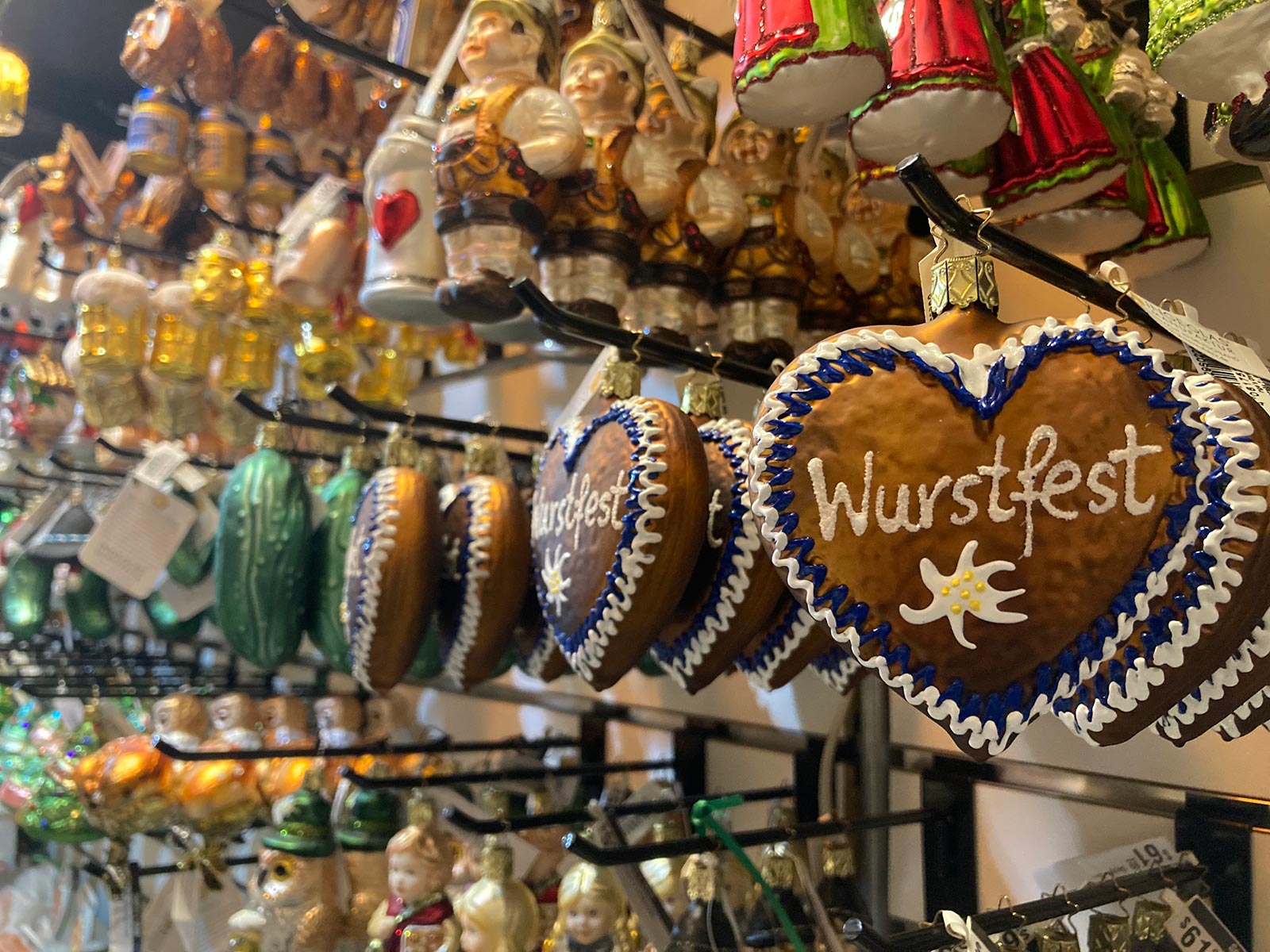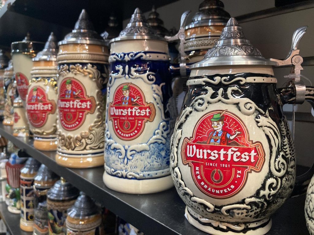 Willkommen to Sophie’s Shop and Carl’s Stein Haus, the go-to vendor for authentic German steins, hats, handicrafts and home to the Official Annual Opa Mug! Benefitting the Sophienburg Museum and Archives, this festive corner booth is located in the Marketplatz breezeway outside the Wursthalle, overlooking the beautiful Comal River. Swing by to complete your festival ensemble with our genuine German made hats, feathers, pins and brushes. Need a vessel for that ice cold beer? Prost! We have the best selection of collectible bona fide German steins and mugs. Prepare for a very merry Weihnachten with our traditional German hand-painted glass ornaments, nutcrackers, smokers, and pyramids. Our crew of friendly volunteers is happy to help with your holiday haul, make sure to stop by and say hallo!